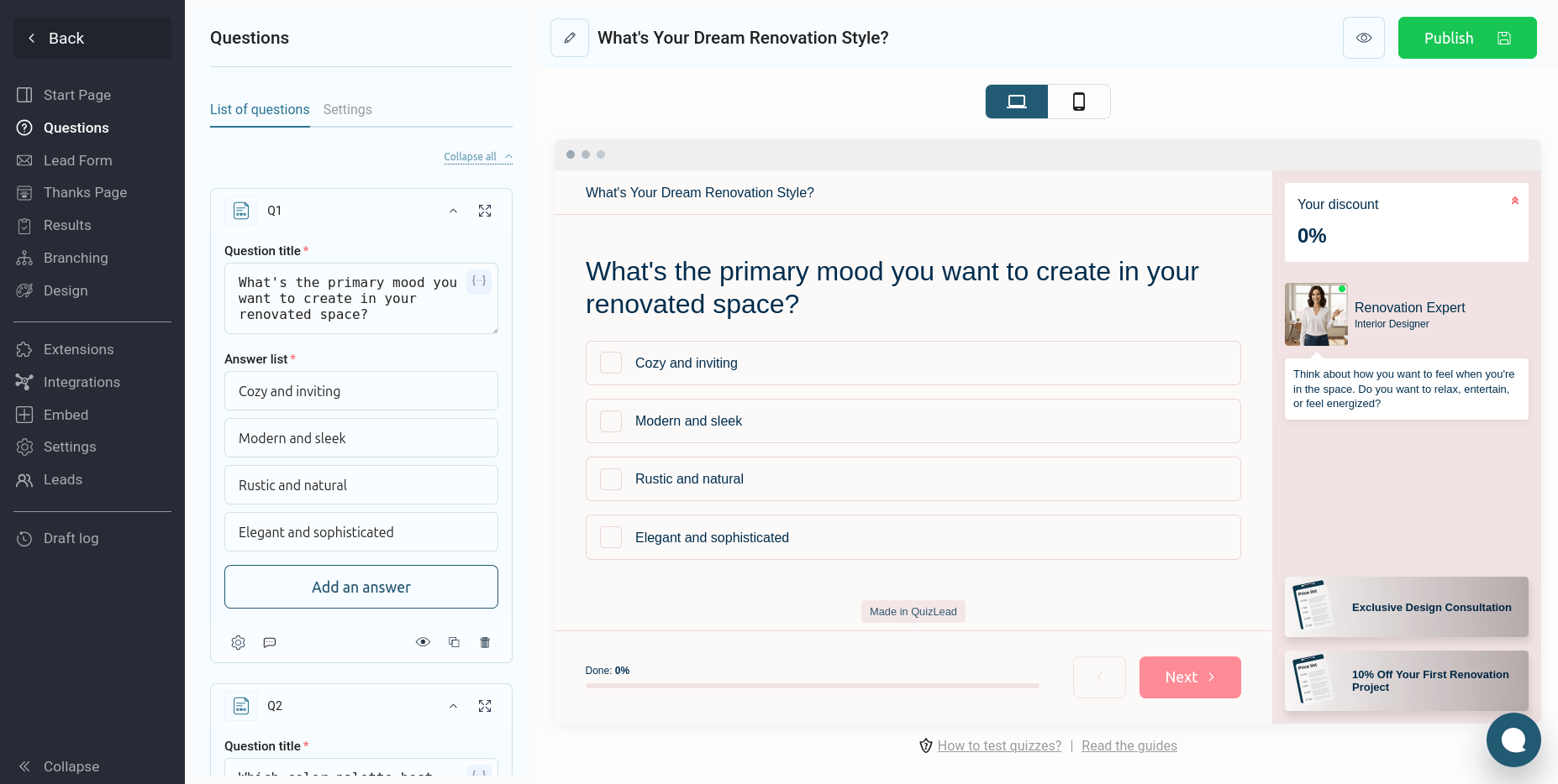 El quiz está listo, pero para que empiece a generar leads, debe realizar dos pasos finales rápidos.