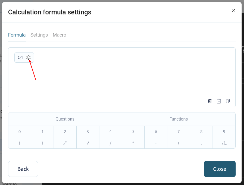 Para mostrar el valor de la fórmula directamente en el cuestionario, puede cambiar a la sección "Configuración":