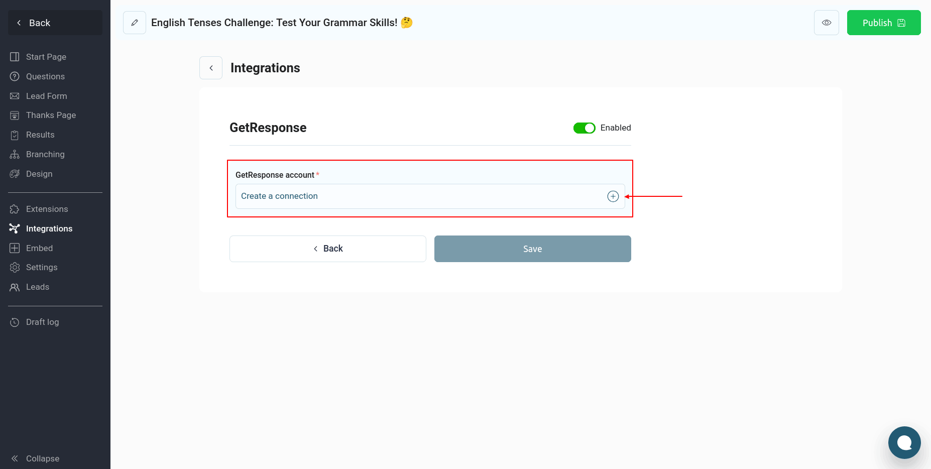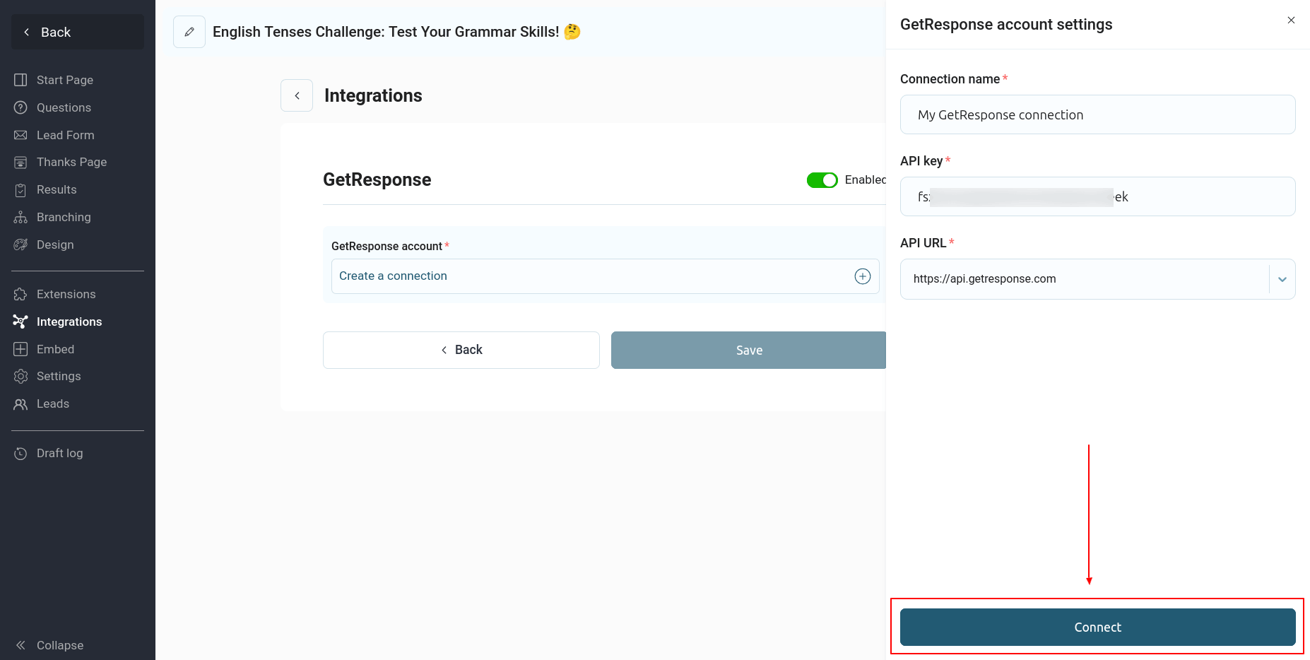 Configure all the required information and click "Save." This completes the quiz integration with GetResponse.
