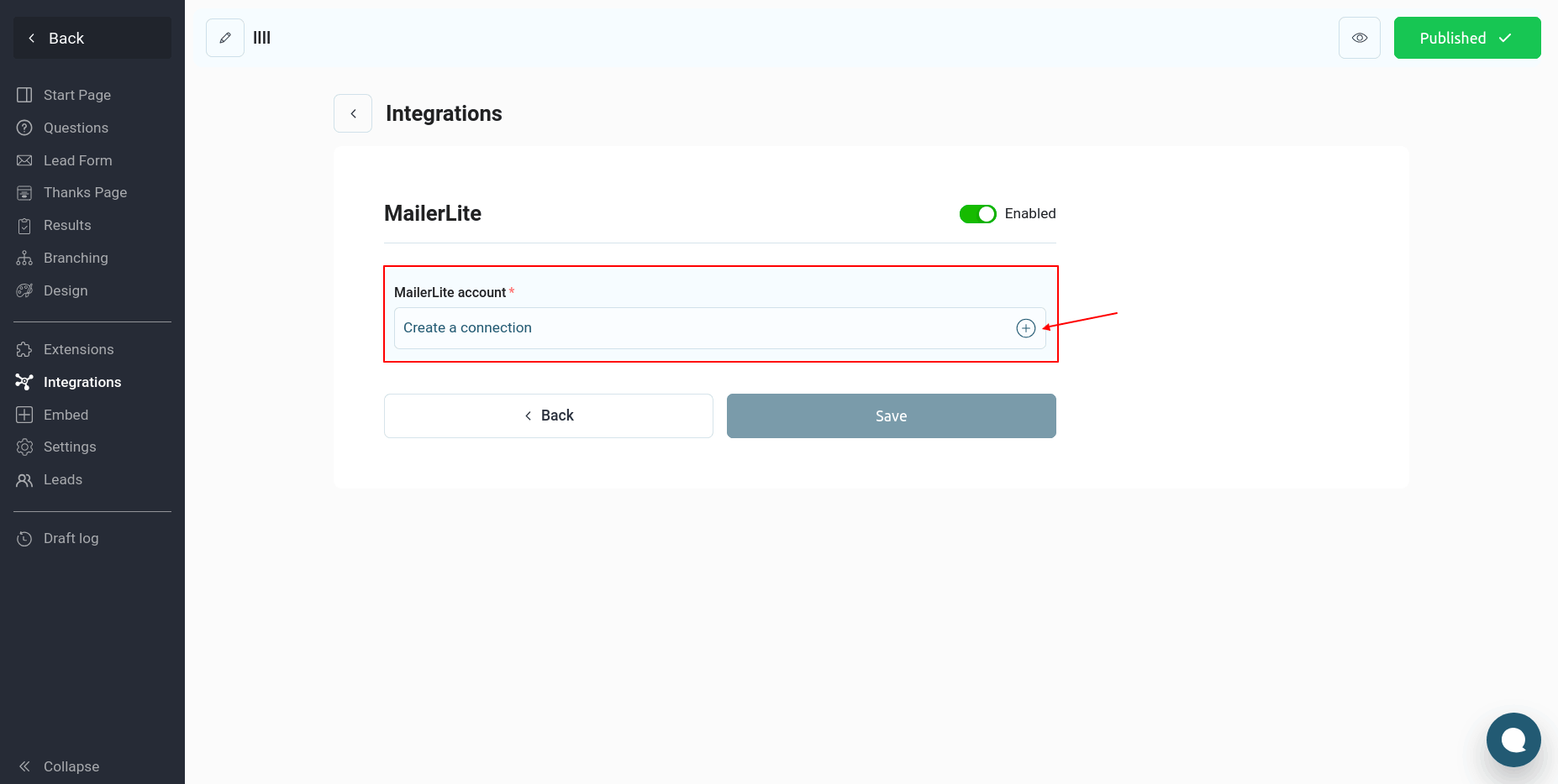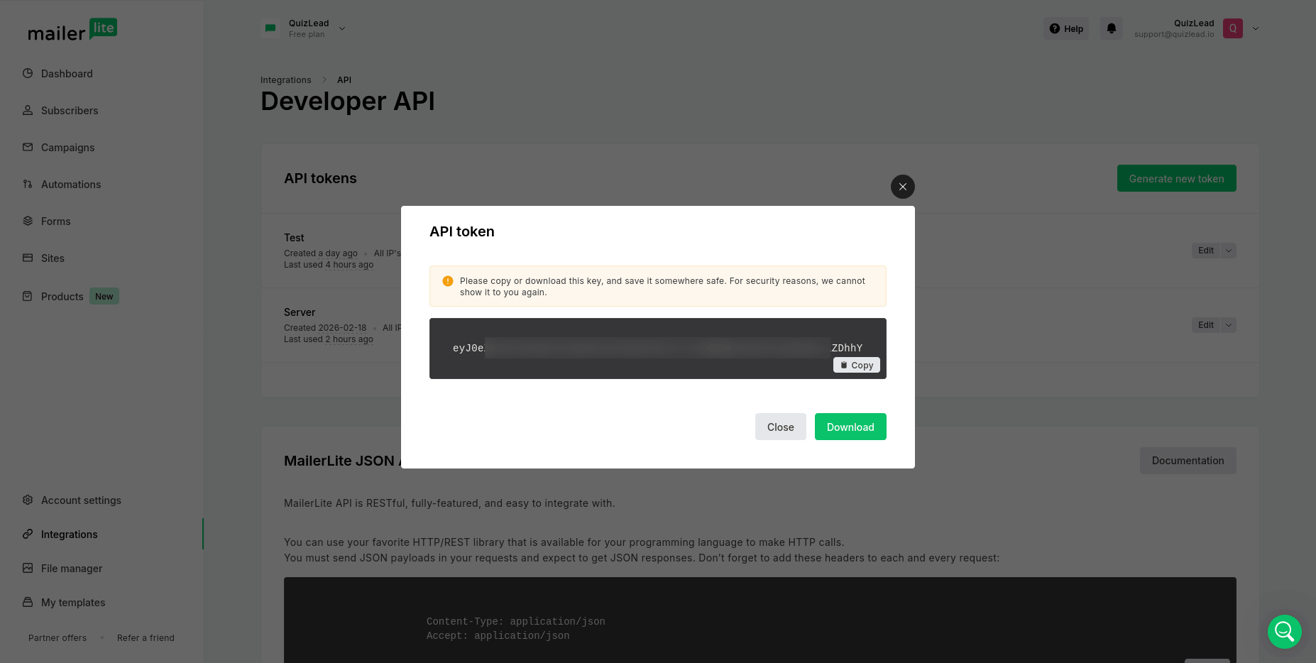 Enter it in the MailerLite integration settings and click the "Connect" button.